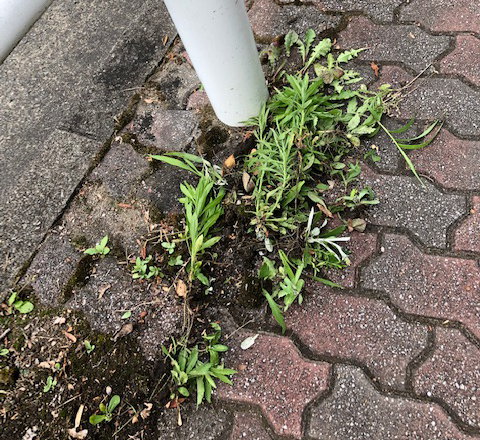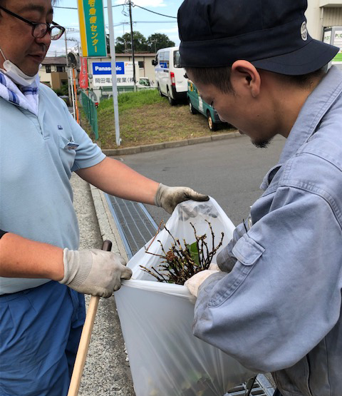植え込みにタバコの吸い殻が大量に捨ててあり清掃。とても残念な光景です。