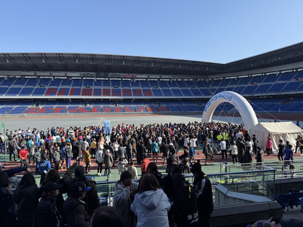 ルールはシンプル----5時間で日産スタジアムの外周1.6㎞を何週走れるか。。。